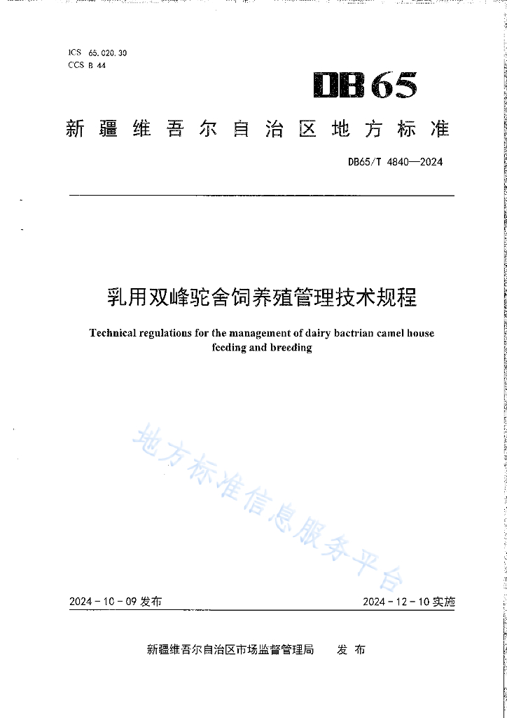 DB65/T 4840-2024 乳用双峰驼舍饲养殖管理技术规程