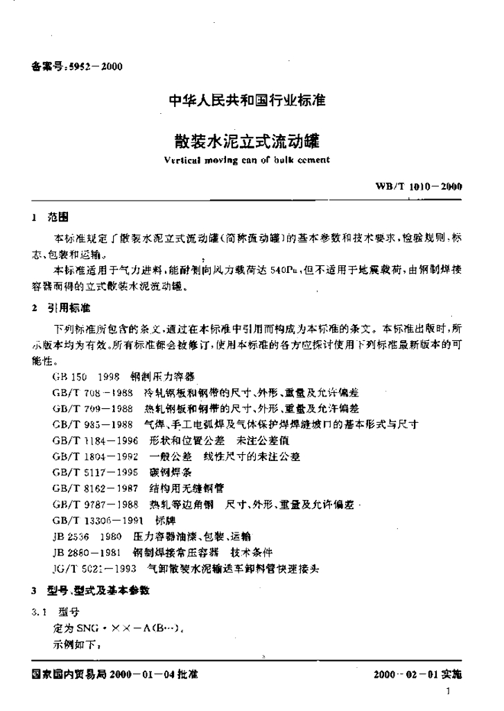 WB/T 1010-2000 散装水泥立式流动罐