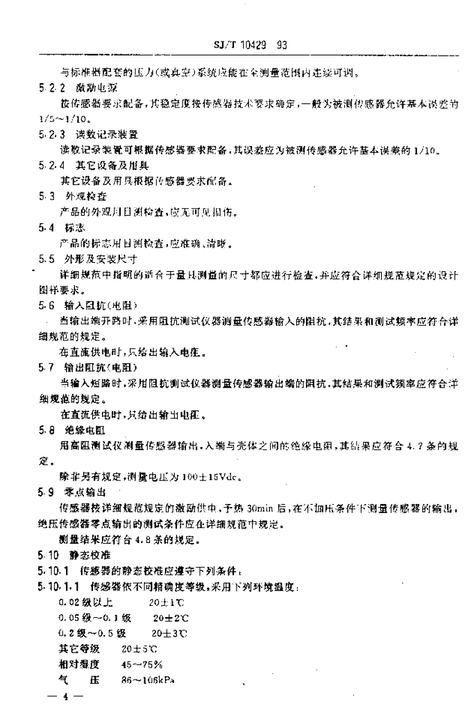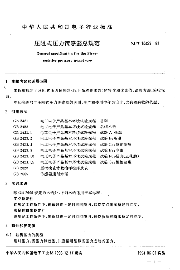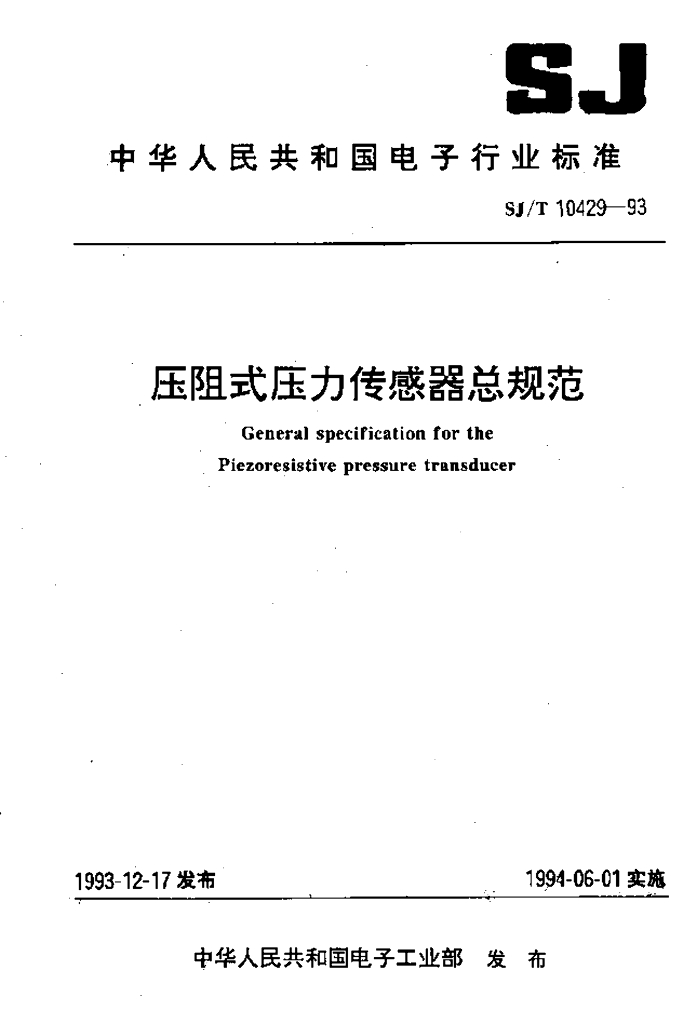 SJ/T 10429-1993 压阻式压力传感器总规范