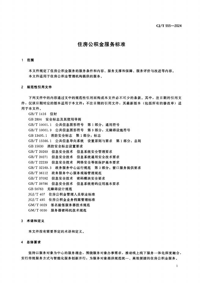 CJ/T 555-2024 住房公积金服务标准