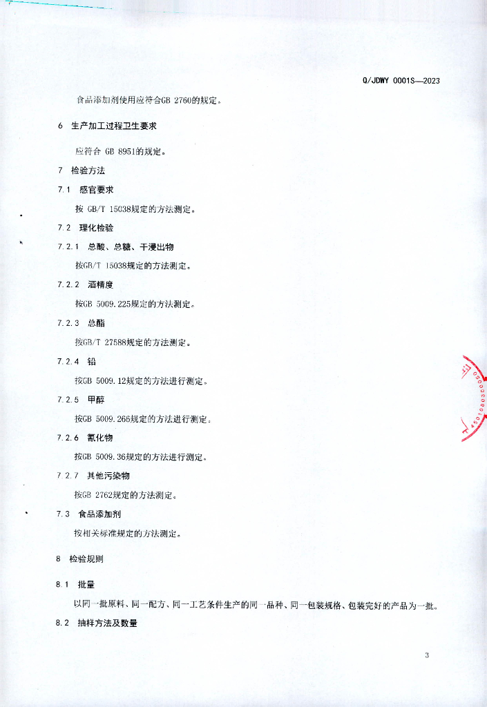 Q/JDWY 0001S-2023 露酒