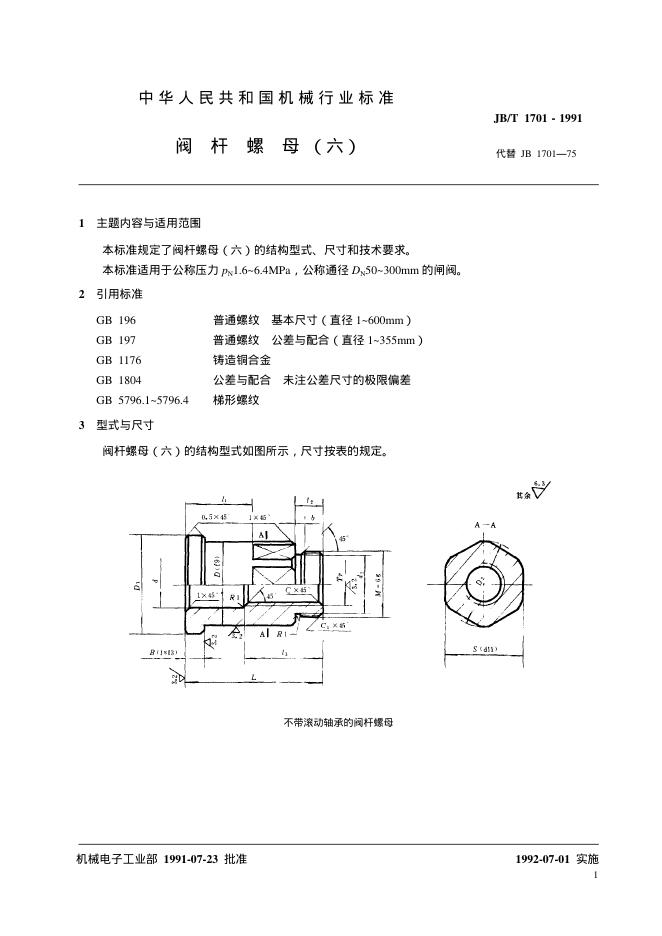 JB/T 1701-1991 阀杆螺母(六)