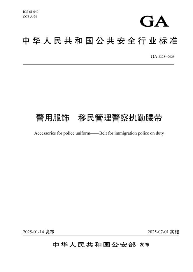 GA 2325-2025 警用服饰 移民管理警察执勤腰带