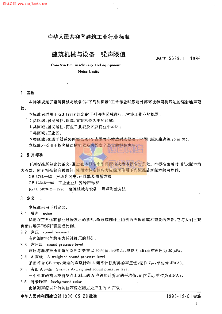 JG/T 5079.1-1996 建筑机械与设备噪声限值规范