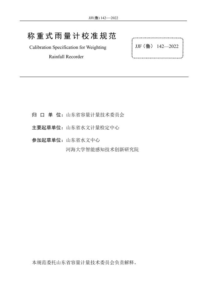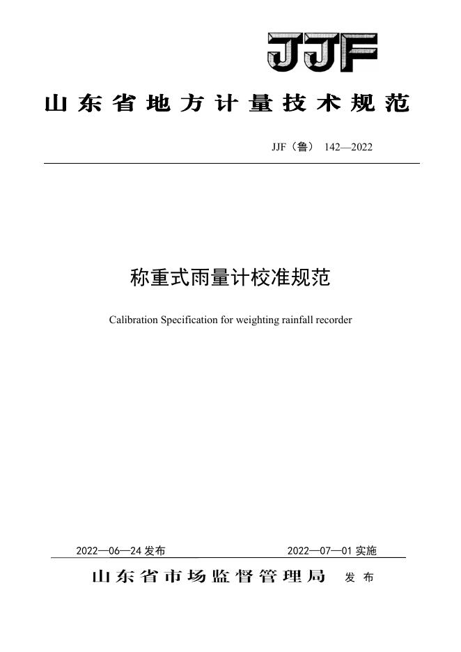 JJF(鲁)142-2022 称重式雨量计校准规范