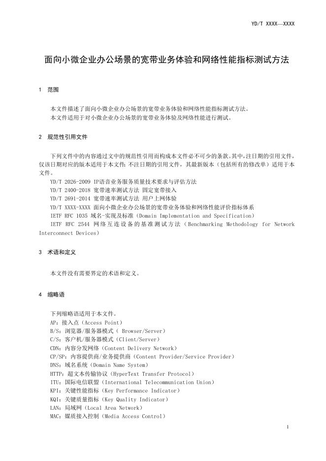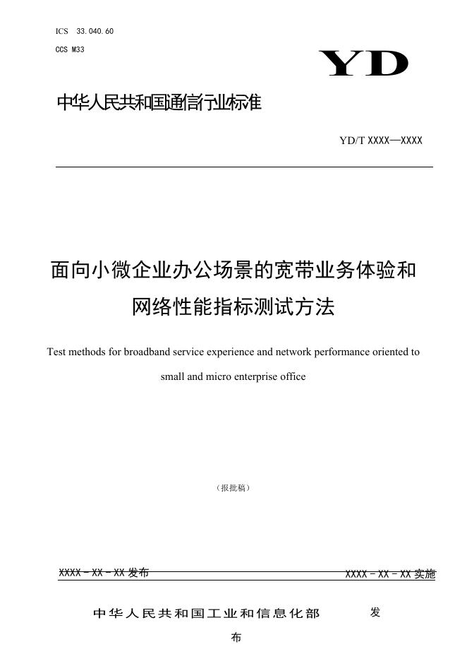 YD/T 6063-2024 面向小微企业办公场景的宽带业务体验和网络性能指标测试方法