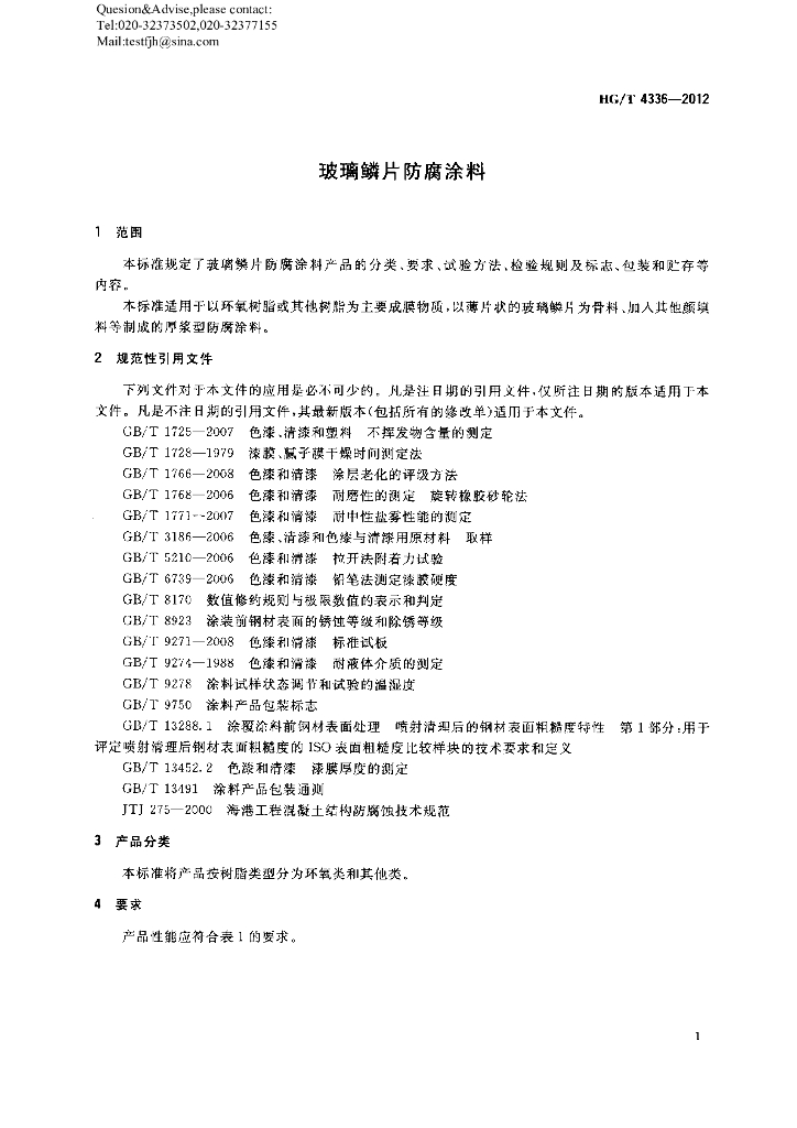 HG/T 4336-2012 玻璃鳞片防腐涂料