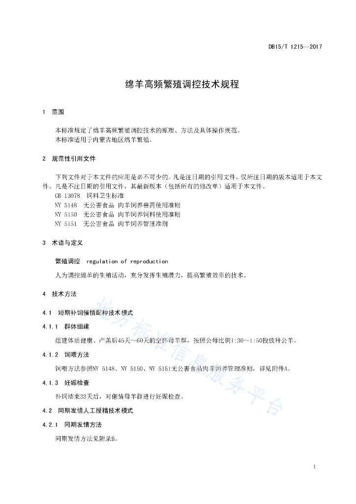 DB15/T 1215-2017 绵羊高频繁殖调控技术规程