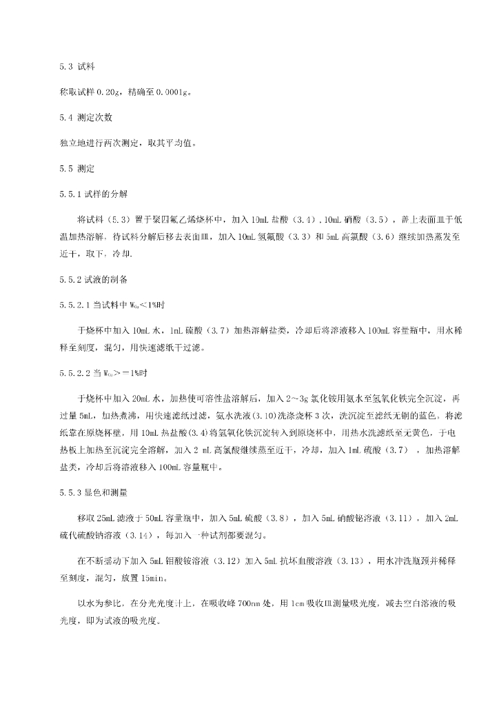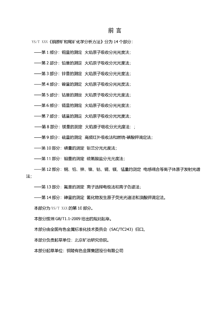 YS/T 1115.10-2016 铜原矿和尾矿化学分析方法 第10部分:磷量的测定 钼蓝分光光度法