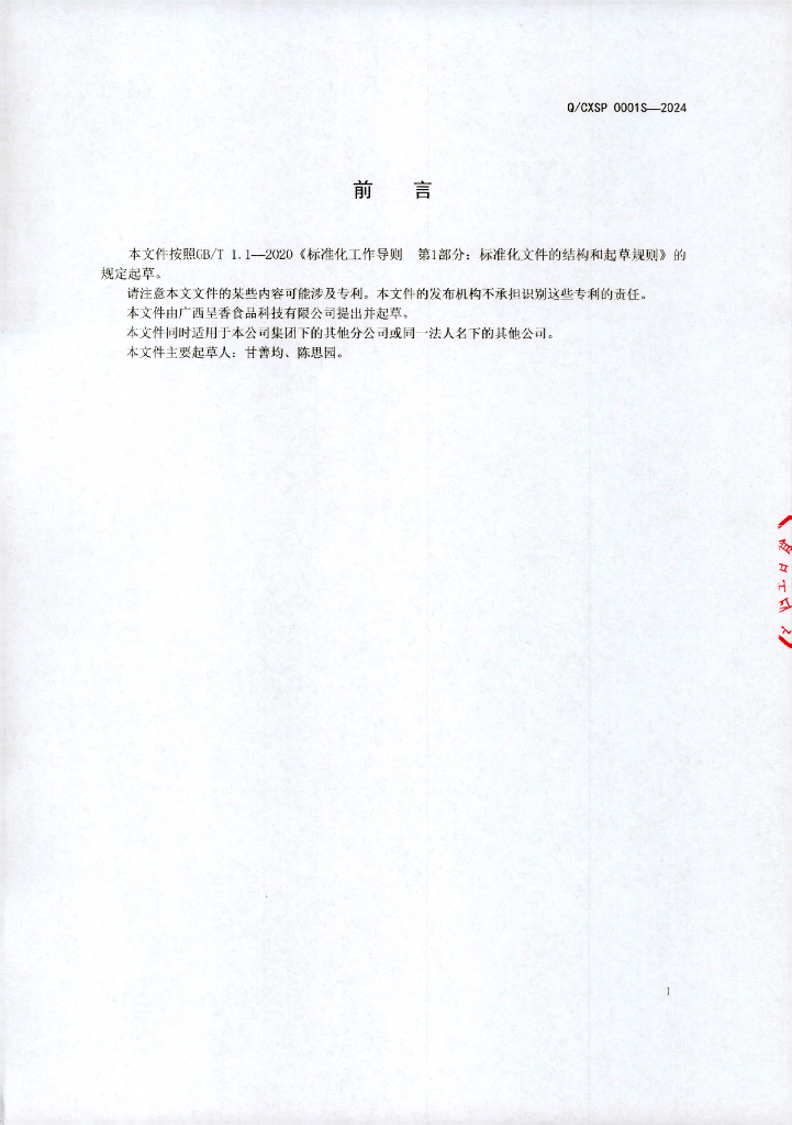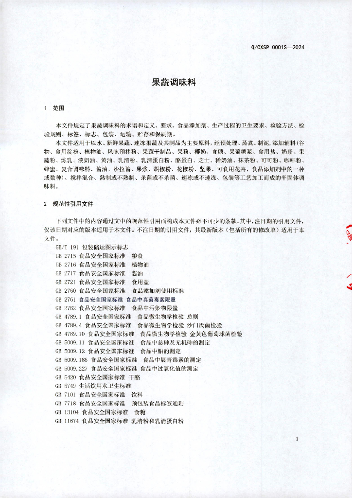 Q/CXSP 0001S-2024 果蔬调味料
