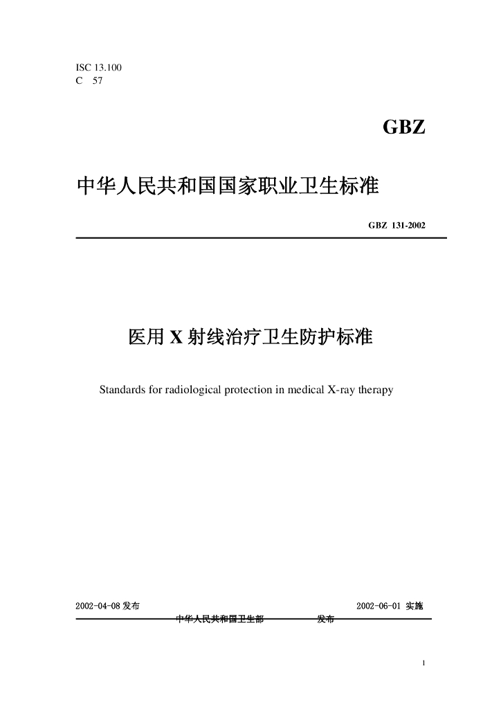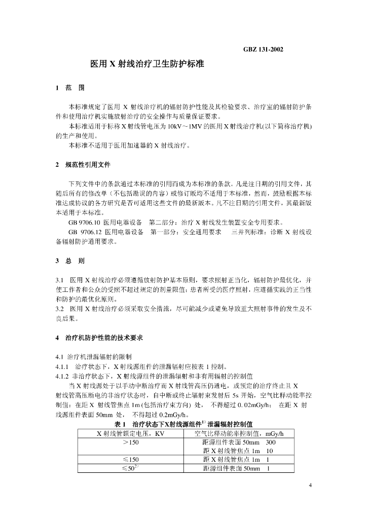 GBZ 131-2002 医用χ射线治疗卫生防护标准