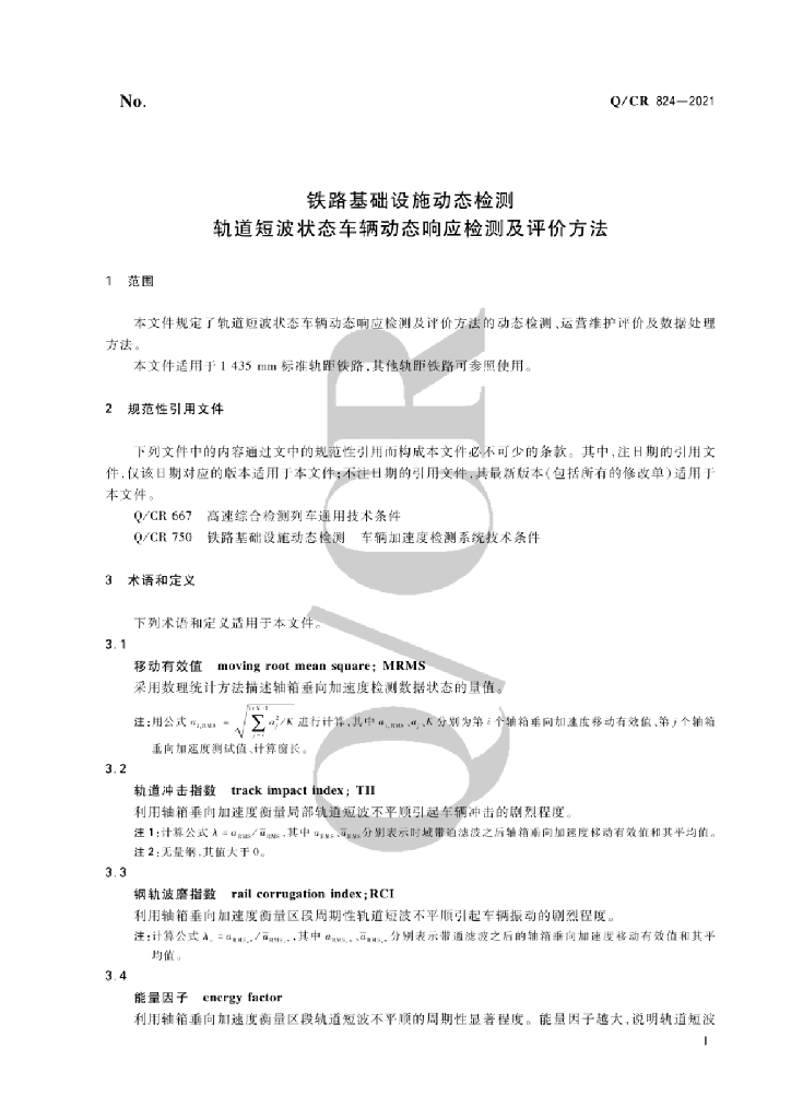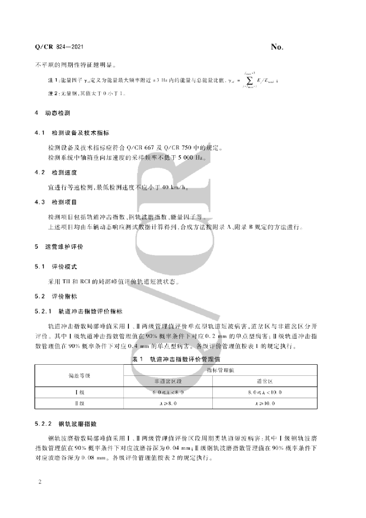 Q/CR 824-2021 铁路基础设施动态检测轨道短波状态车辆动态响应检测及评价方法