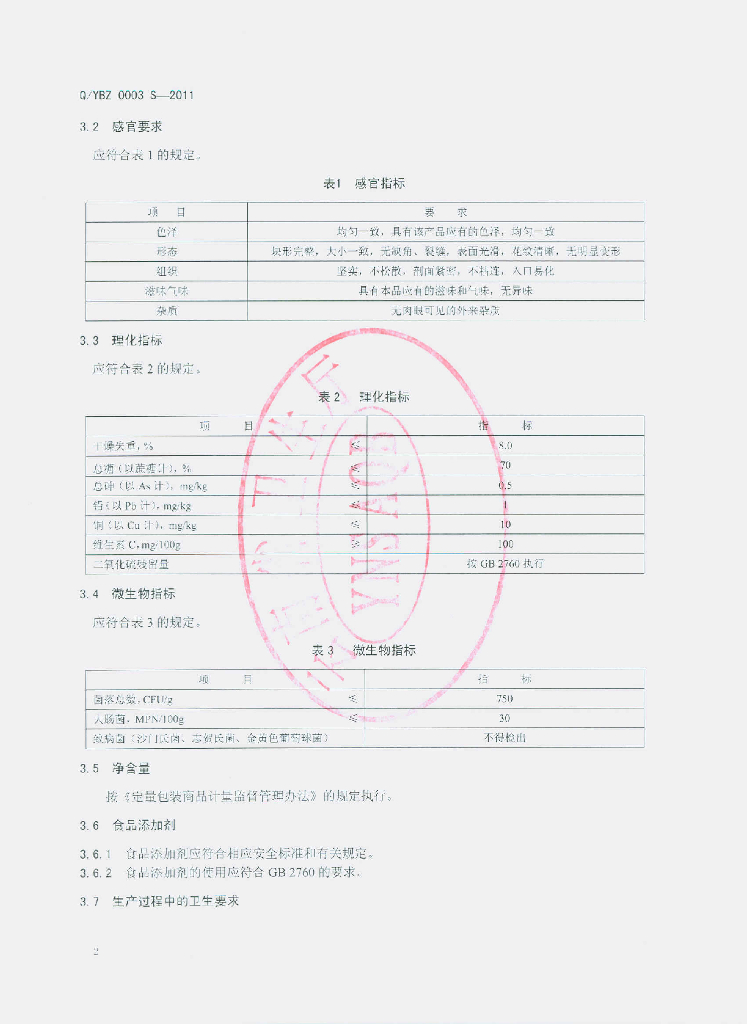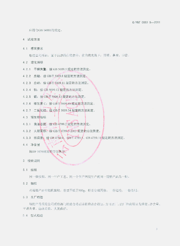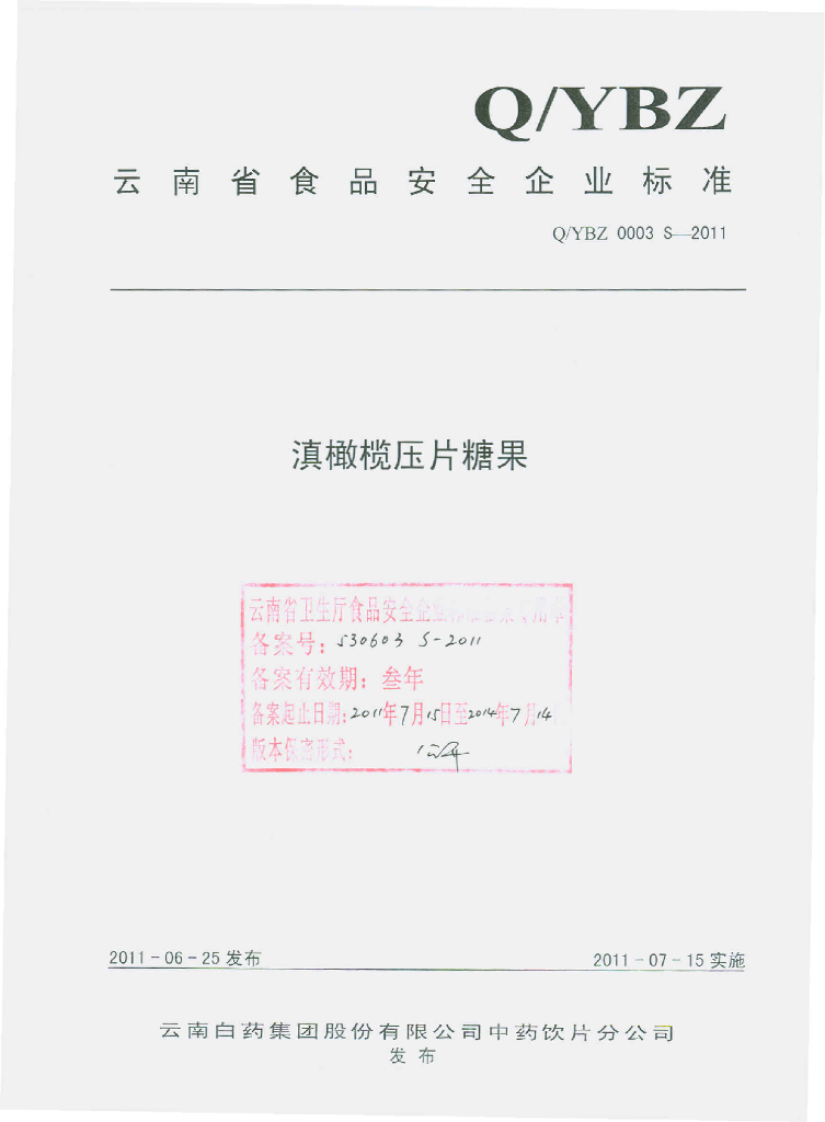 Q/YBZ 0003S-2011 滇橄榄压片糖果