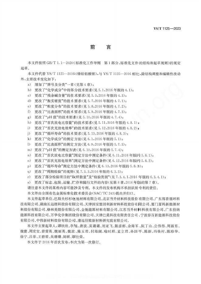 巴斯夫杉杉电池材料有限公司、北京当升材料科技股份有限公司、广东邦普循环科技有限公司、湖南长远锂科股份有限公司、天津国安盟固利新材料科技股份有f限公司、厦门厦钨新能源材料股份有限公司、格林美股份有限公司、金驰能源材料有限公司、江苏当升材料科技有限公司、广东佳纳能源科技有限公司、万华化学集团股份有限公司、天津巴莫科技有限责任公司、宁波容百新能源科技股份有限公司、中伟新材料股份有限公司、清远佳致新材料研究院有限公司