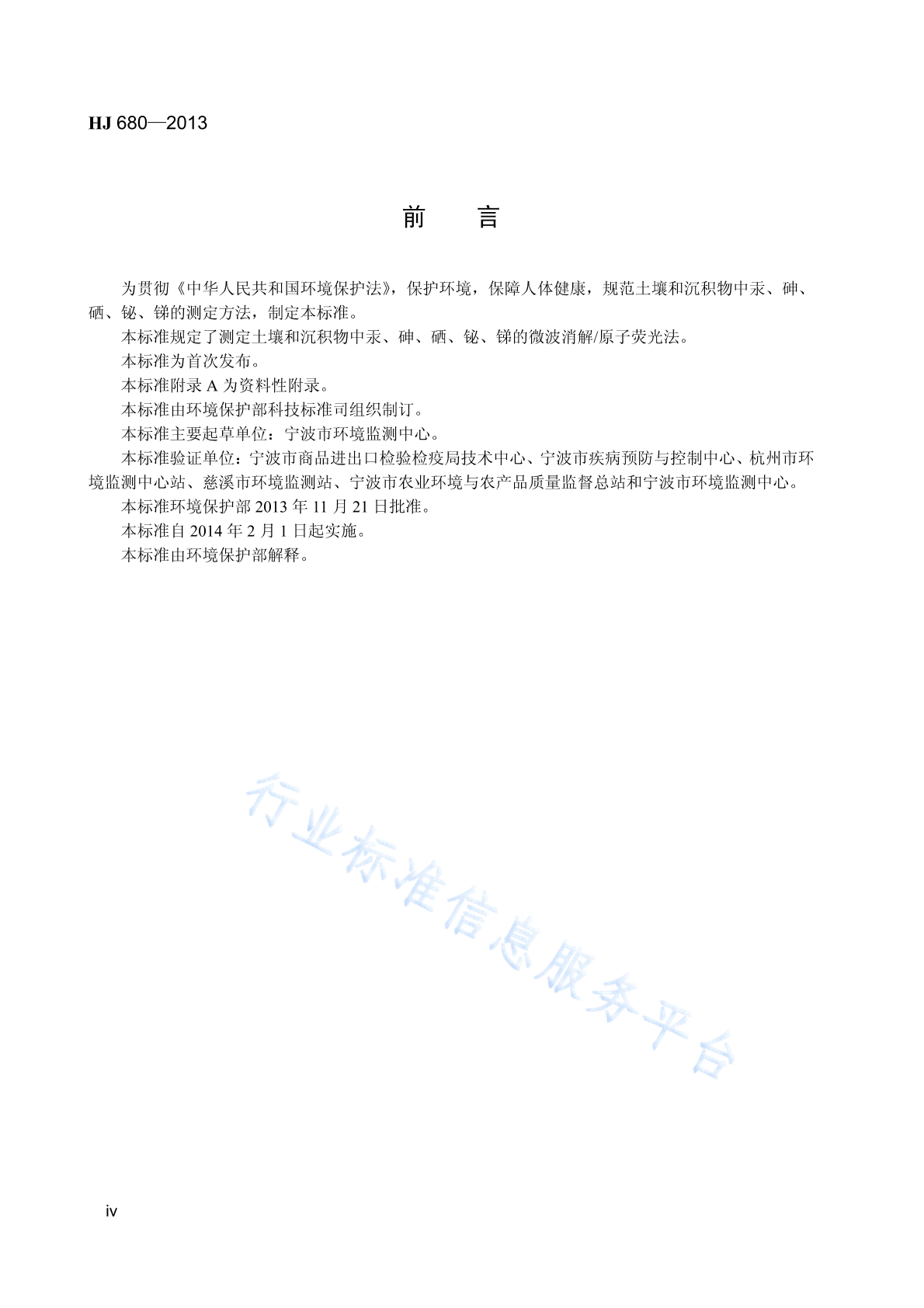 HJ 680-2013 土壤和沉积物 汞、砷、硒、铋、锑的测定 微波消解/原子荧光法