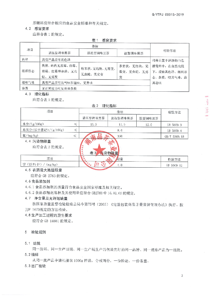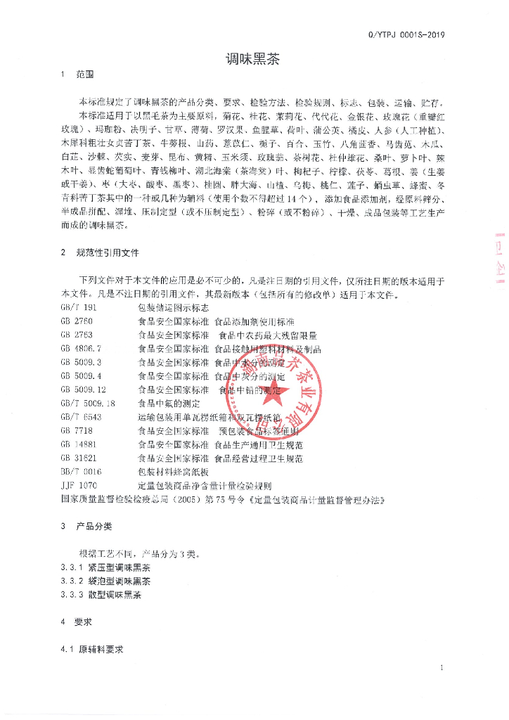 Q/YTPJ 0001S-2019 调味黑茶