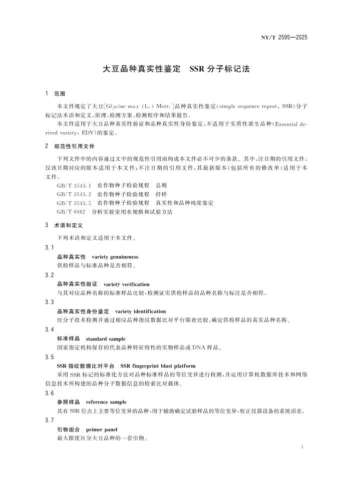 NY/T 2595-2025 大豆品种真实性鉴定SSR分子标记法