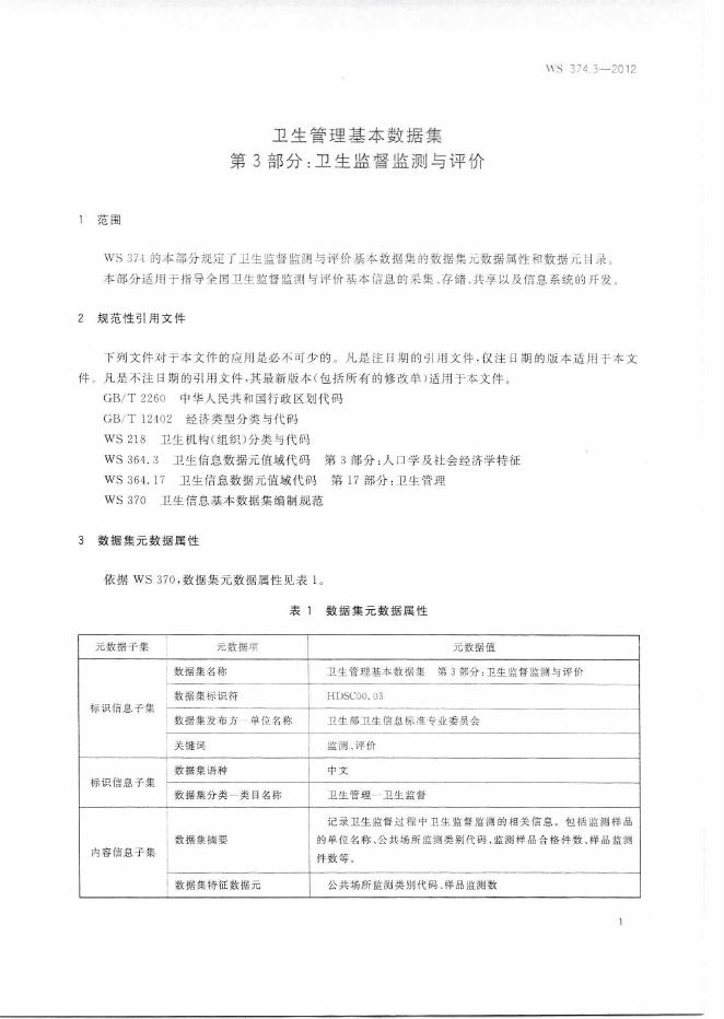 WS 374.3-2012 卫生管理基本数据集 第3部分:卫生监督监测与评价
