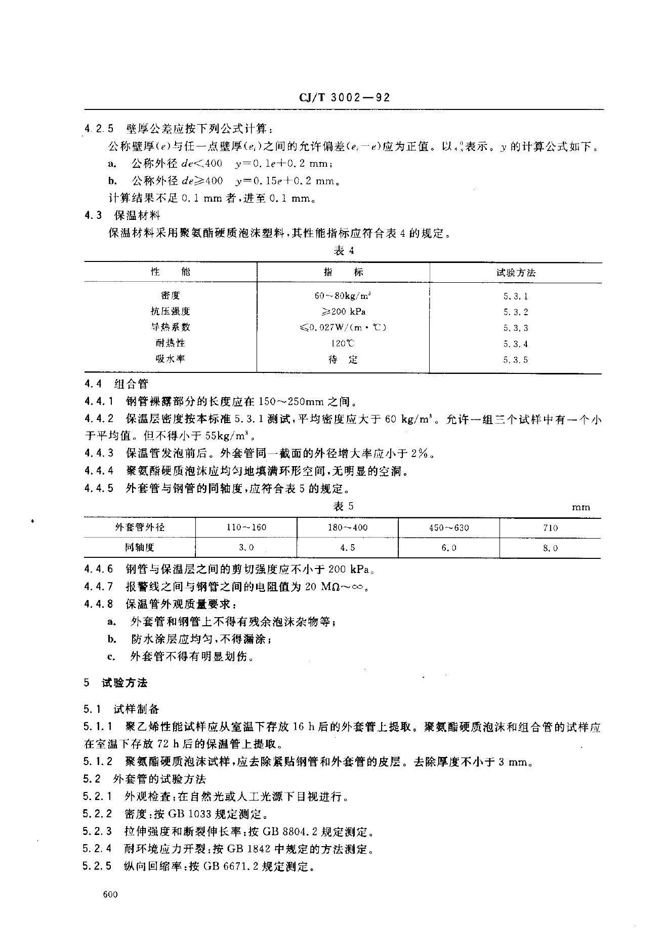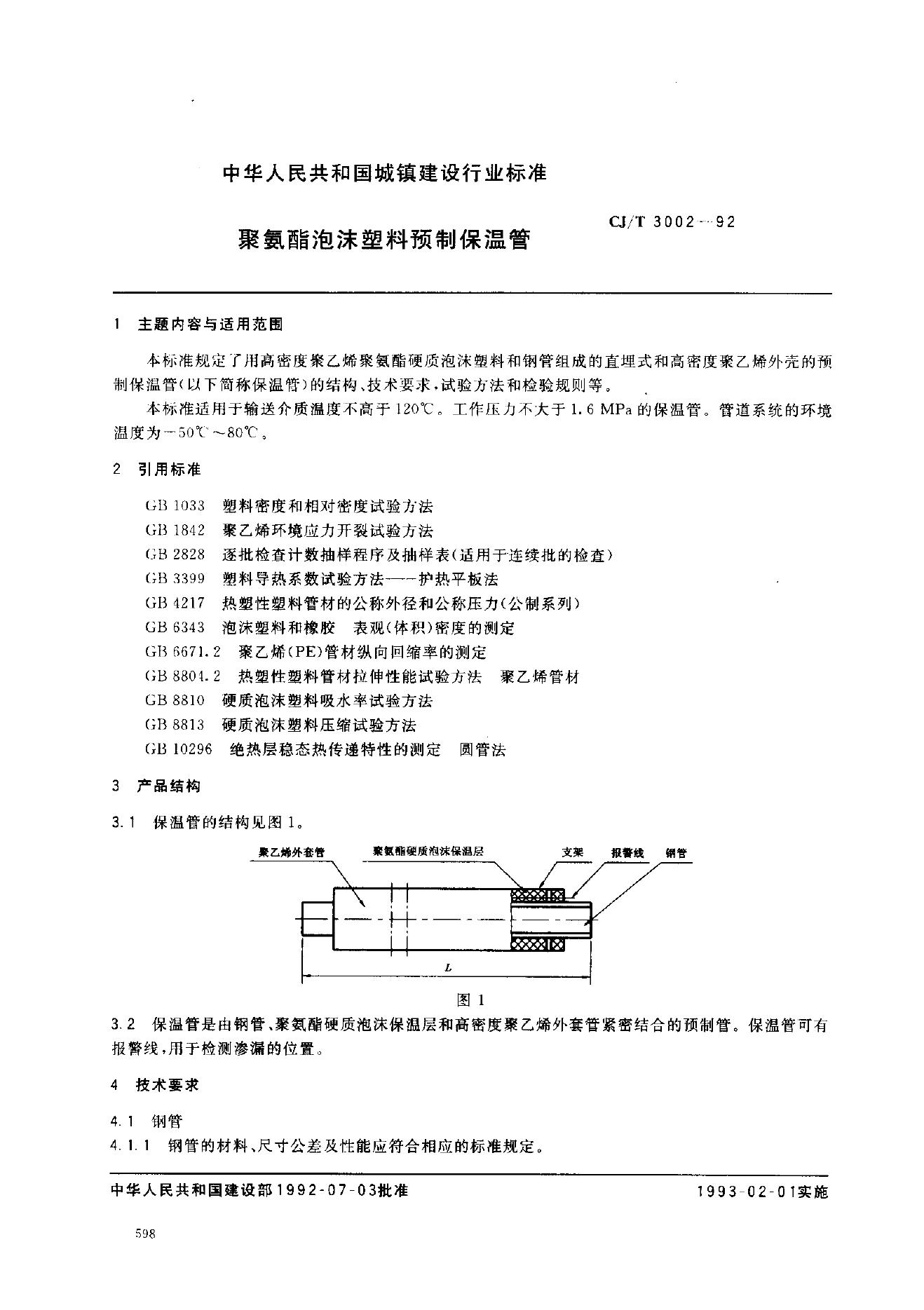 CJ/T 3002-1992 聚氨酯泡沫塑料预制保温管