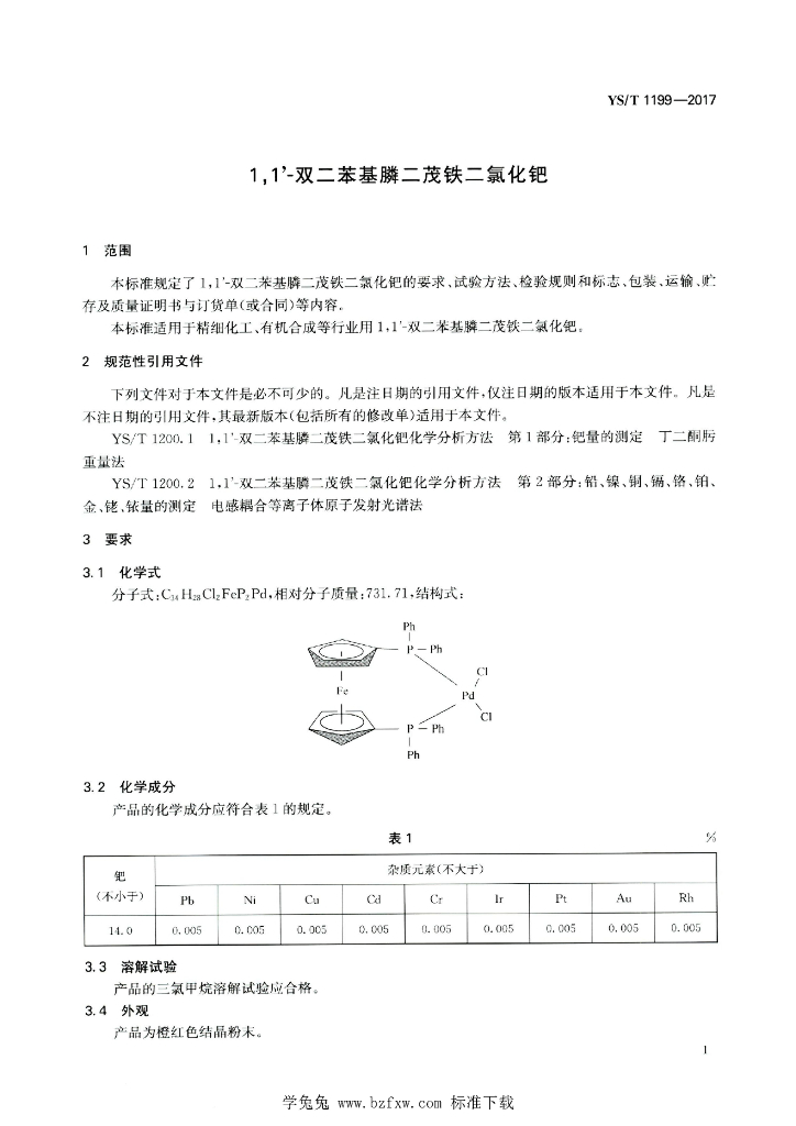 YS/T 1199-2017 1,1'-双二苯基膦二茂铁二氯化钯
