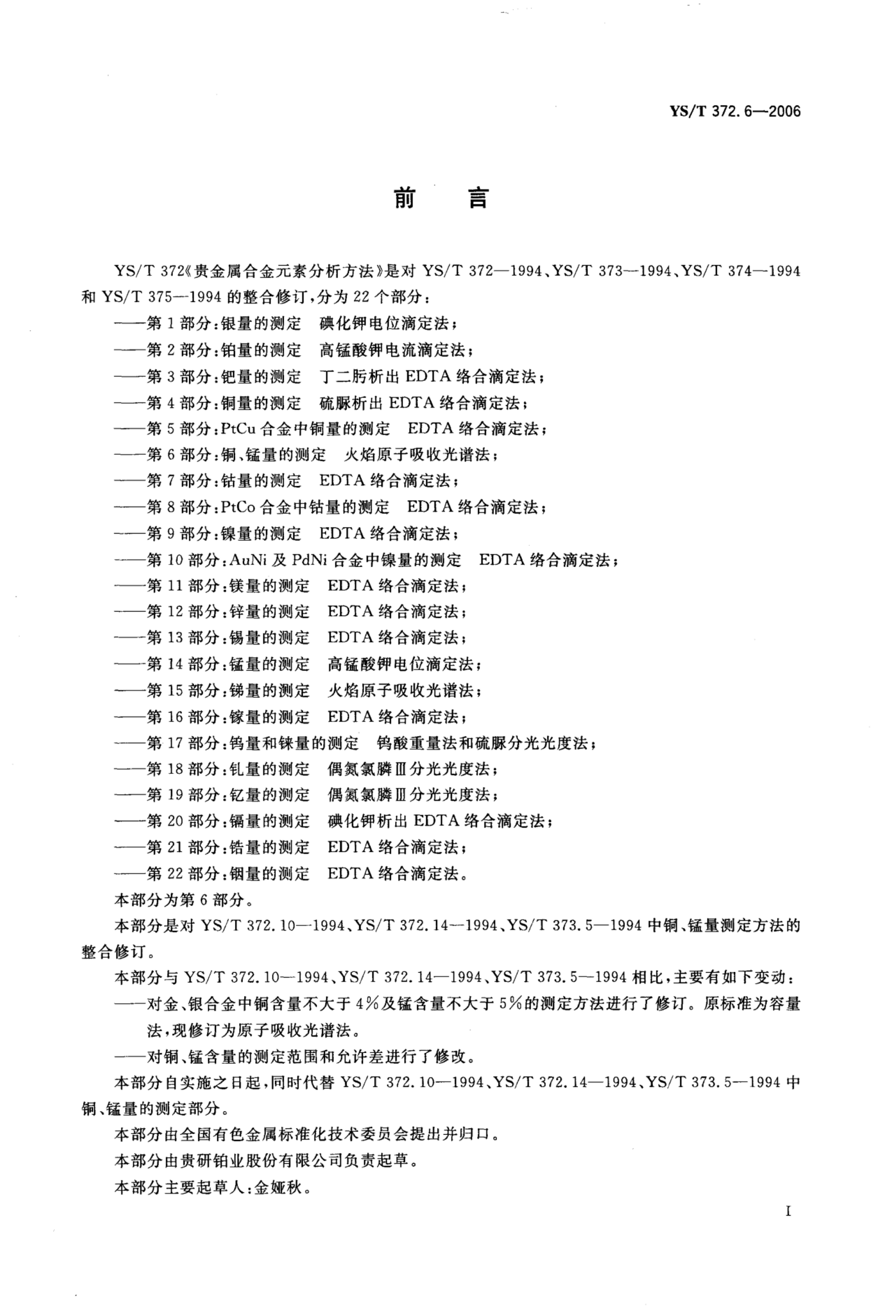 YS/T 372.6-2006 贵金属合金元素分析方法 铜锰量的测定火焰原子吸收光谱法
