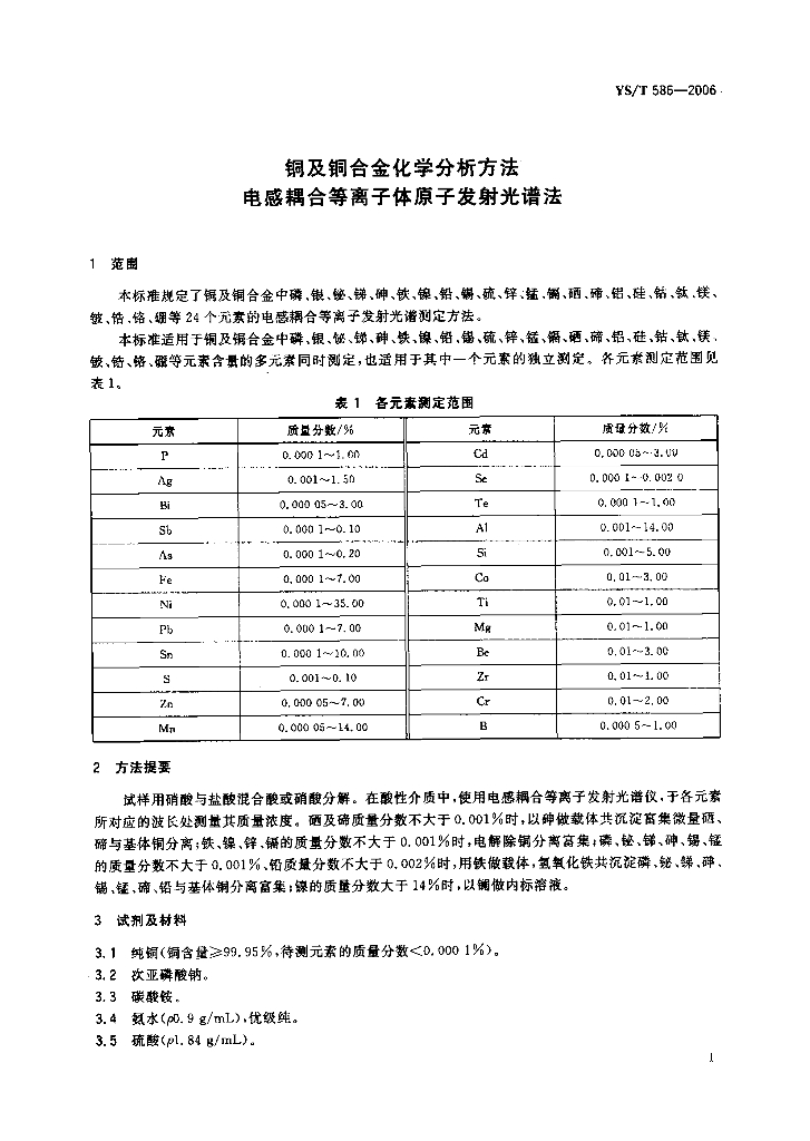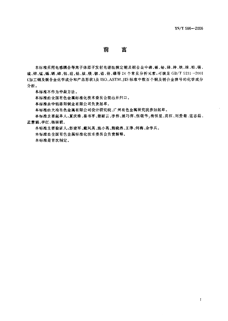 YS/T 586-2006 铜及铜合金化学分析方法 电感耦合等离子体原子发射光谱法