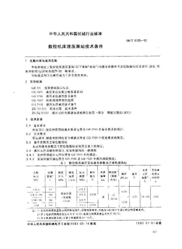 JB/T 6105-1992 数控机床液压泵站技术条件