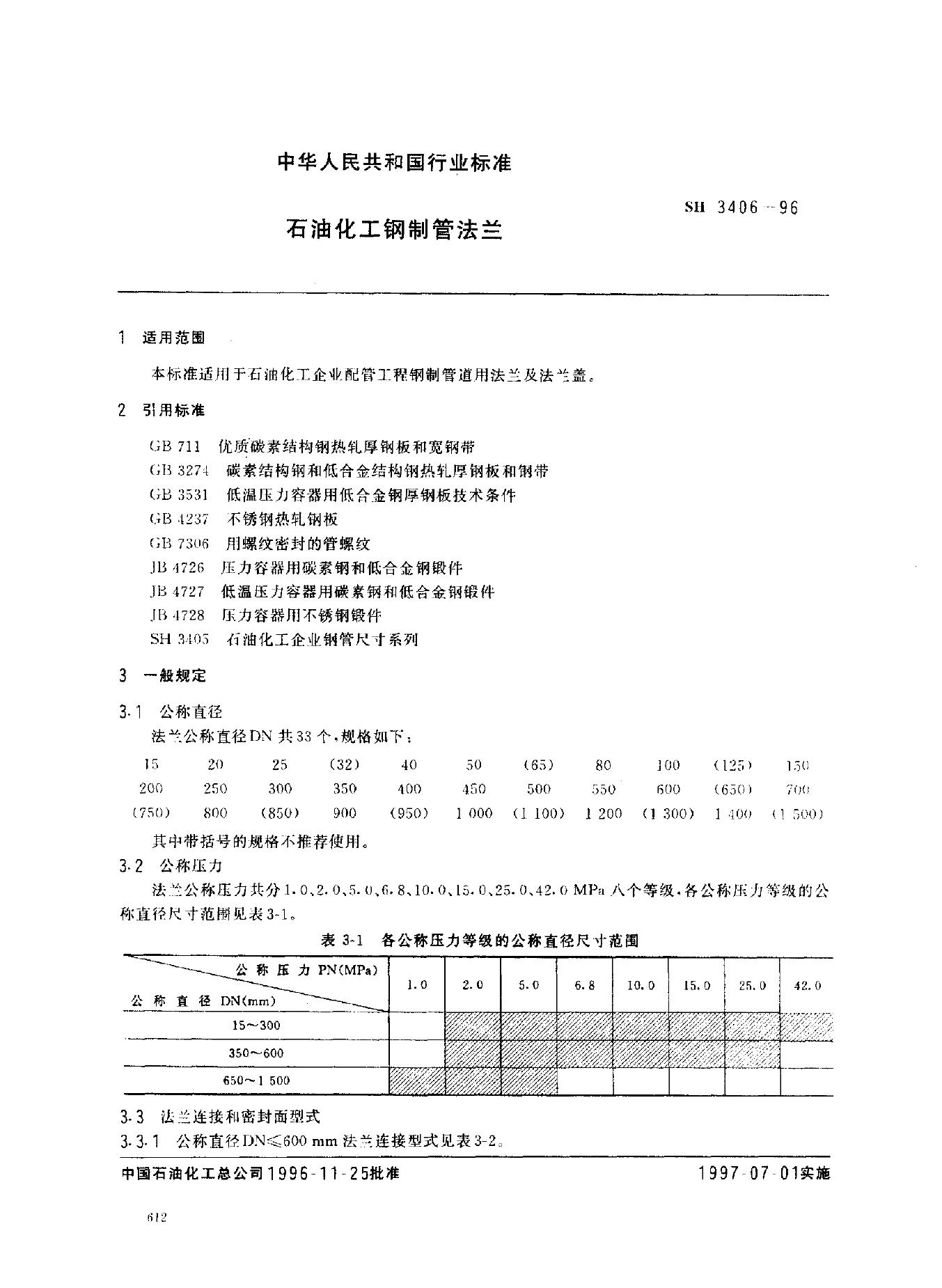 SH 3406-1996 石油化工钢制管法兰