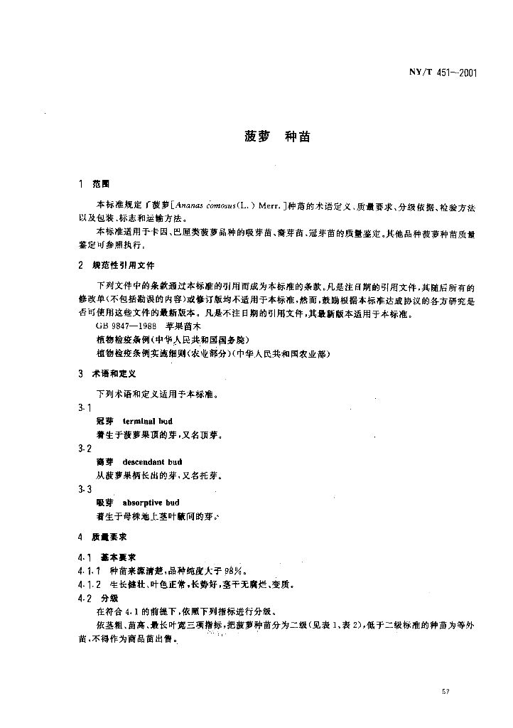 NY/T 451-2001 菠萝种苗