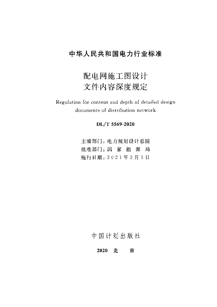 DL/T 5569-2020 配电网施工图设计文件内容深度规定