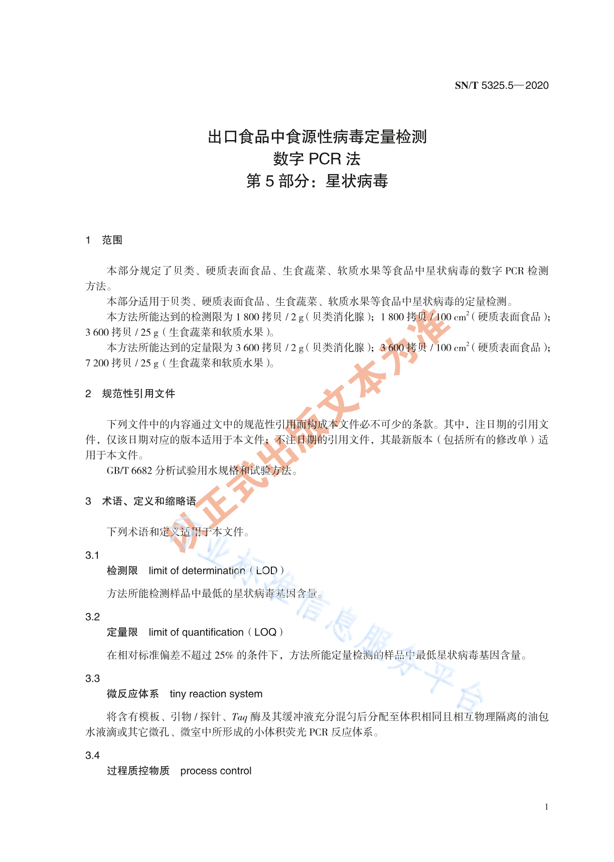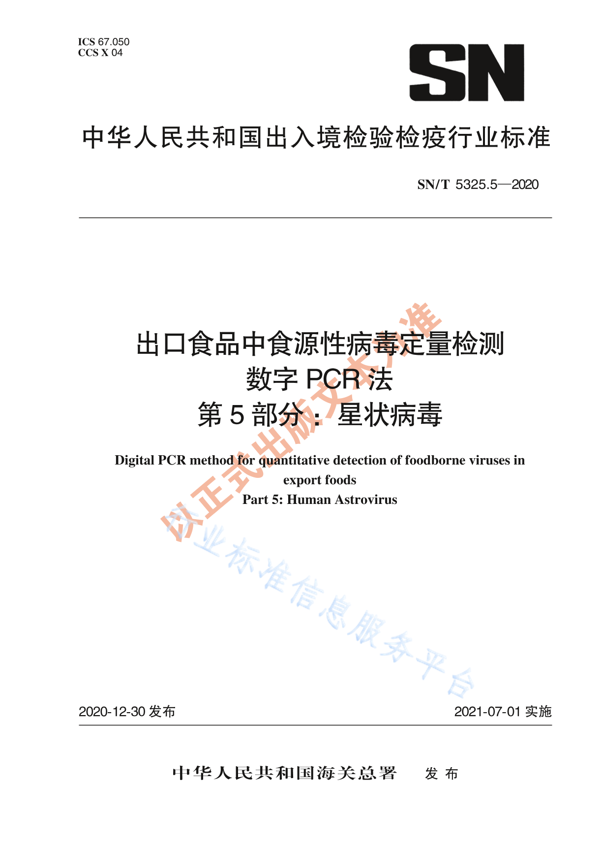 SN/T 5325.5-2020 出口食品中食源性病毒定量检测 数字PCR法 第5部分:星状病毒