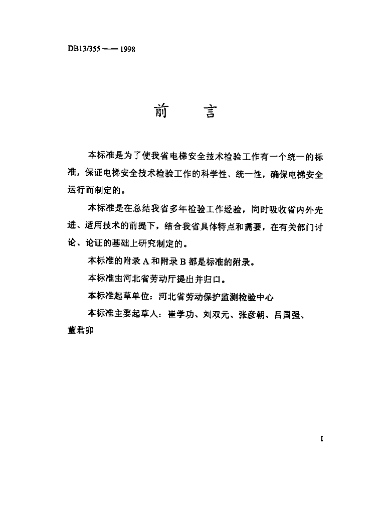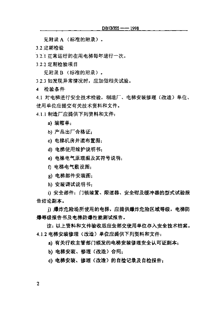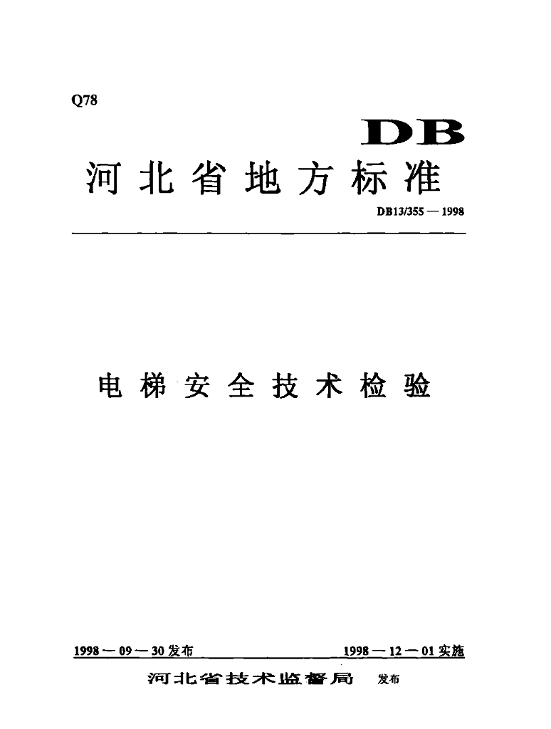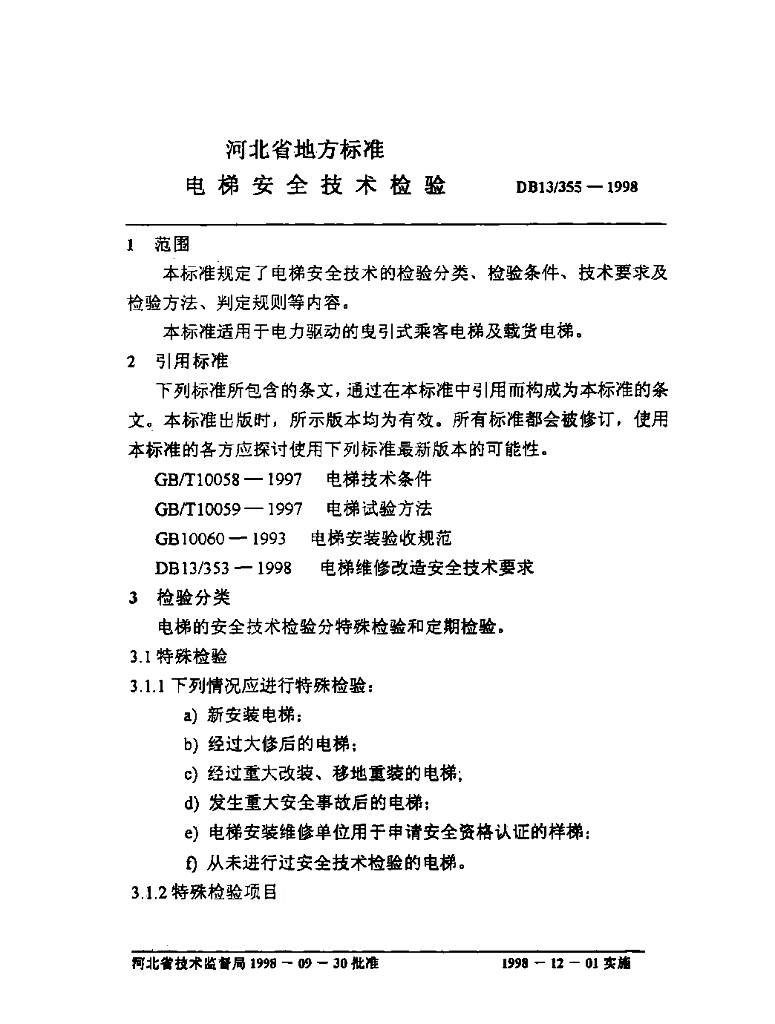 DB13/ 355-1998 电梯安全技术检验