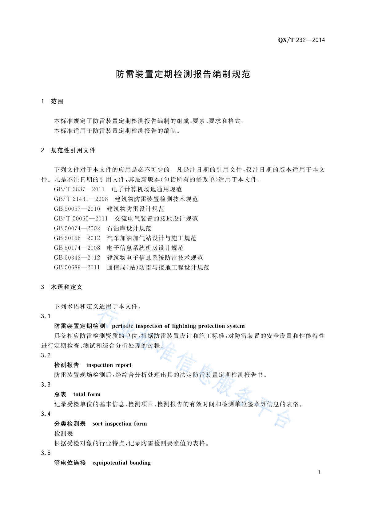 QX/T 232-2014 防雷装置定期检测报告编制规范
