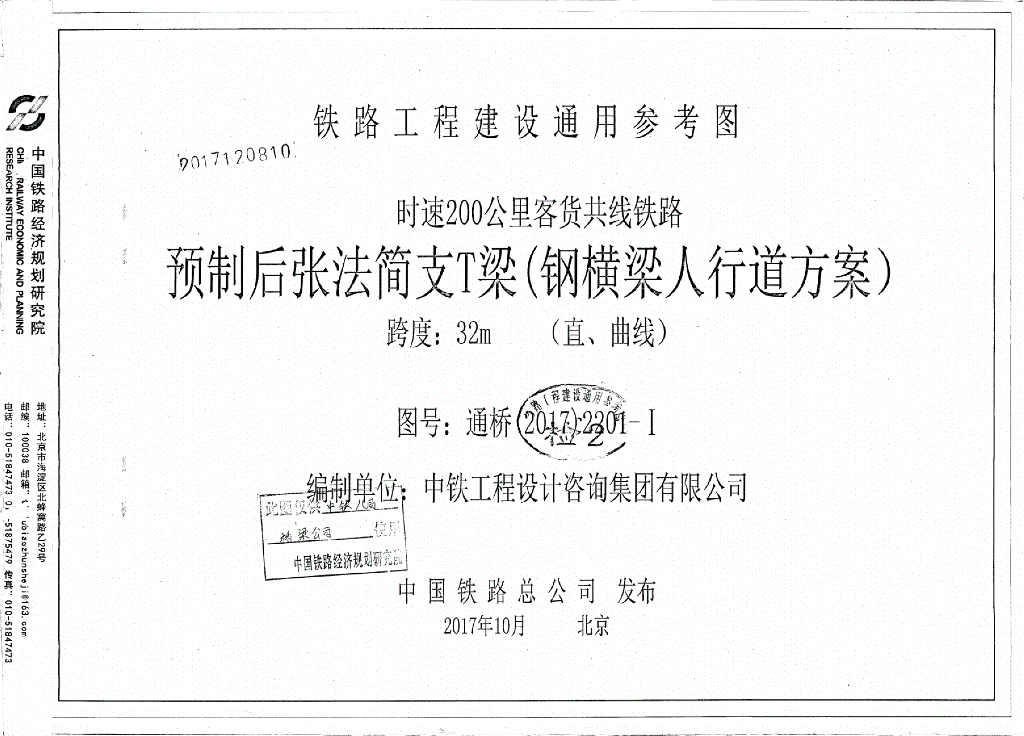 通桥(2017)2201-Ⅰ 时速200公里客货共线铁路预制后张法简支T梁32m图集