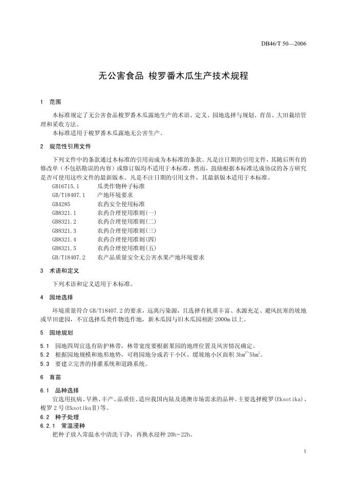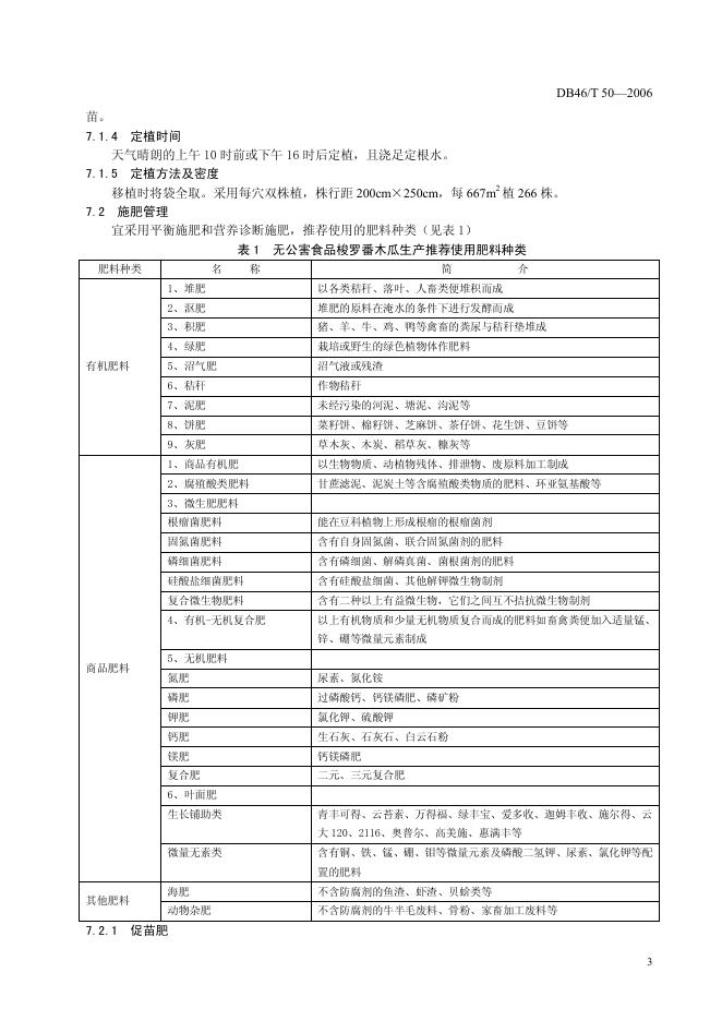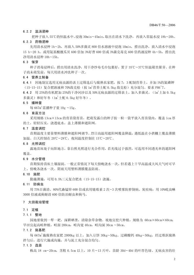 DB46/T 50-2006 无公害食品 梭罗番木瓜生产技术规程