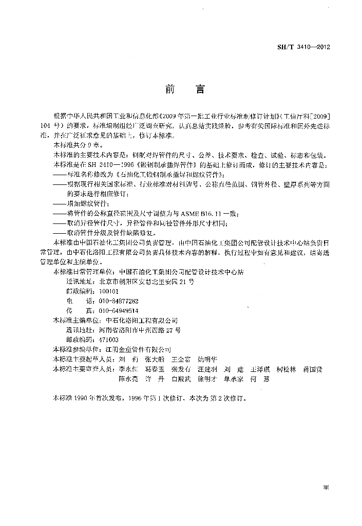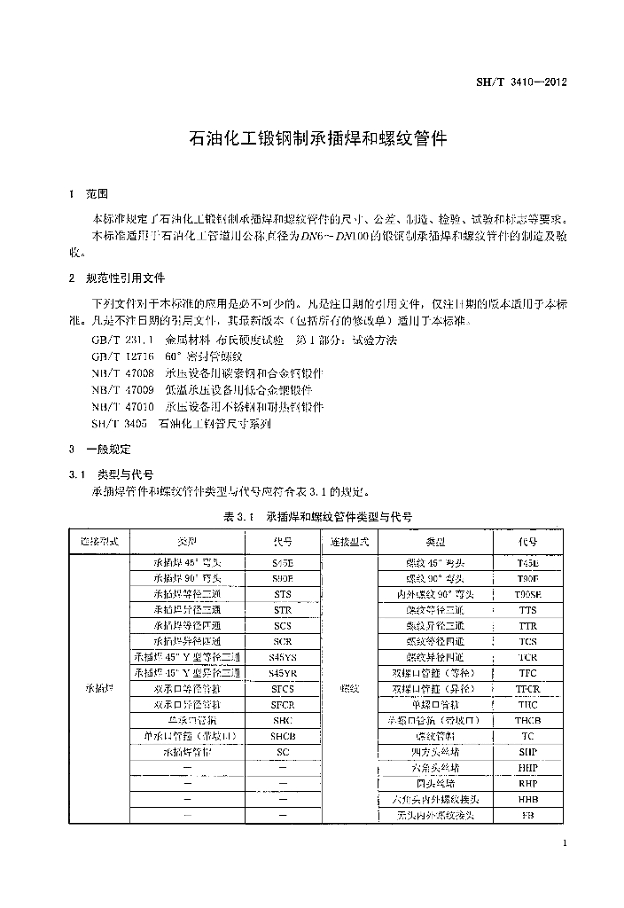 SH/T 3410-2012 石油化工锻钢制承插焊和螺纹管件