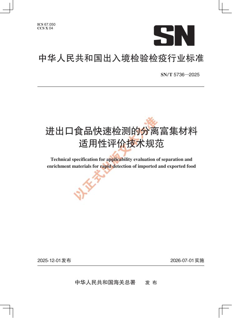 SN/T 5736-2025 进出口食品快速检测的分离富集材料适用性评价技术规范
