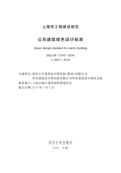 DGJ 08-2143-2014 公共建筑绿色设计标准