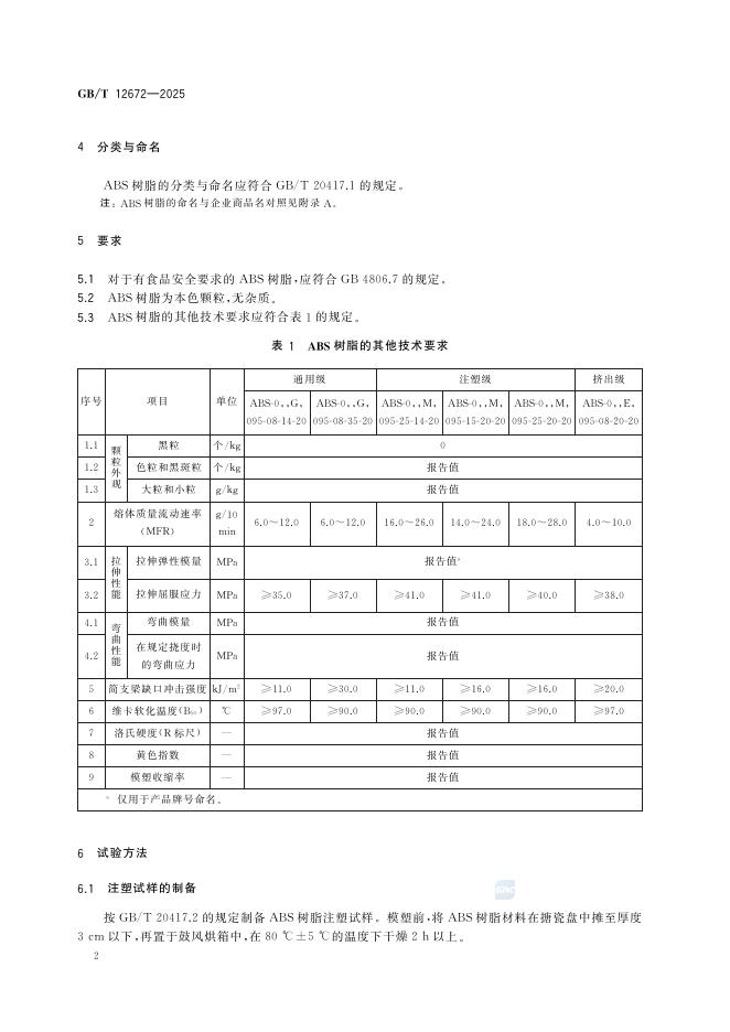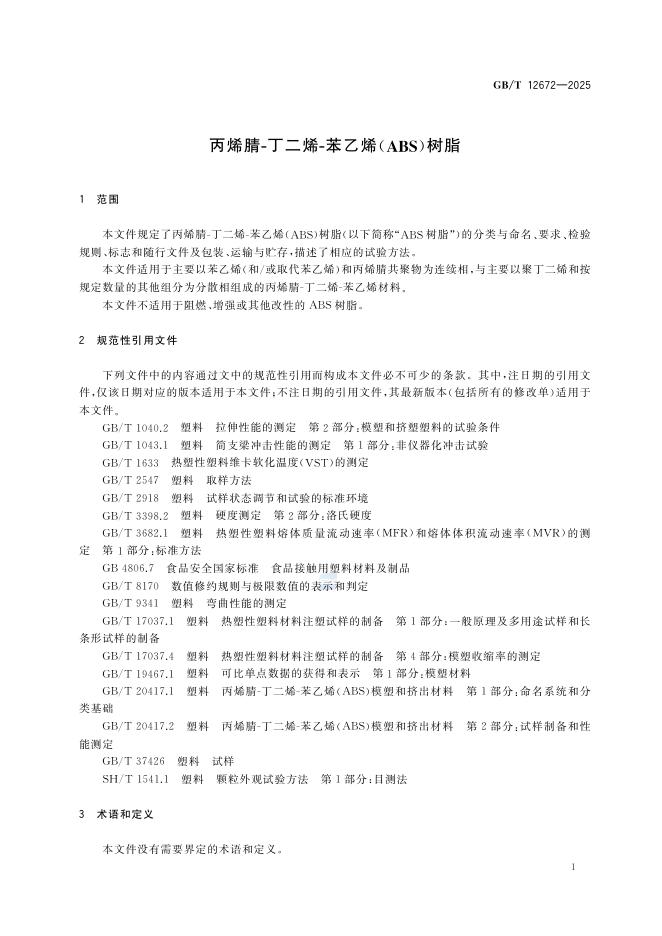 GB/T 12672-2025 丙烯腈-丁二烯-苯乙烯(ABS)树脂