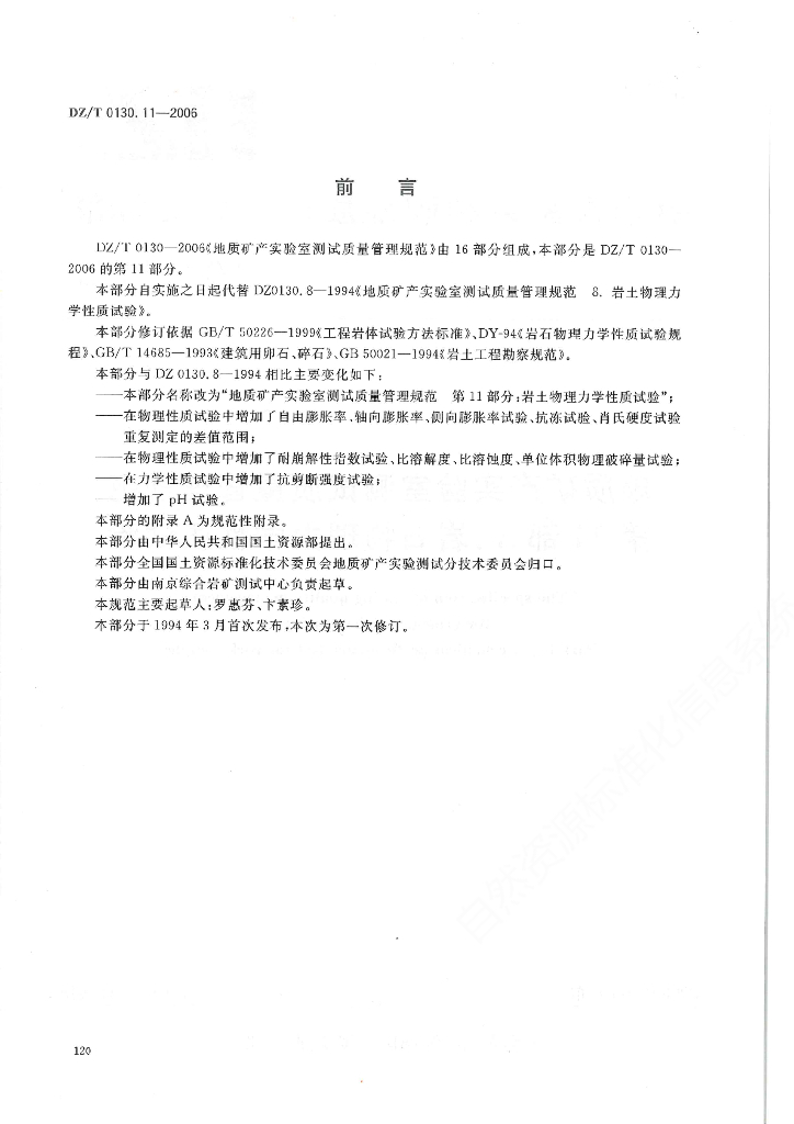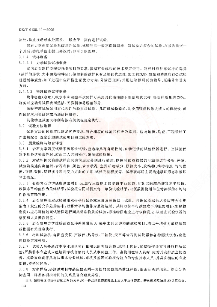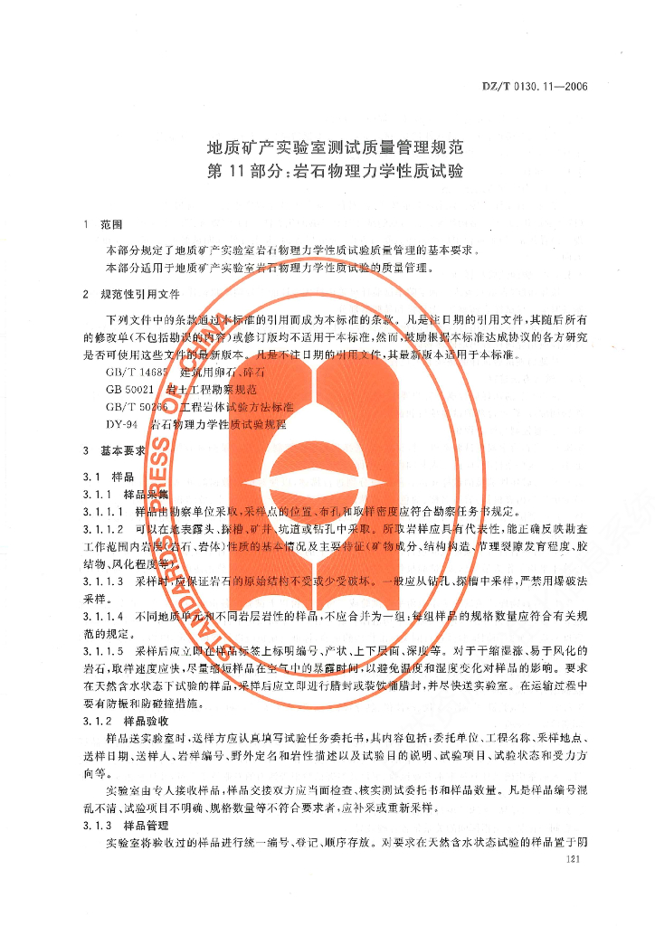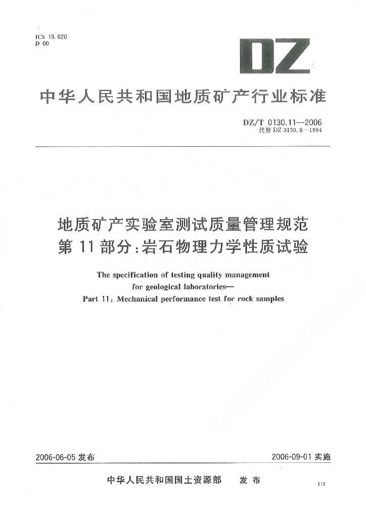 DZ/T 0130.11-2006 地质矿产实验室测试质量管理规范 第11部分:岩石物理化学性质试验