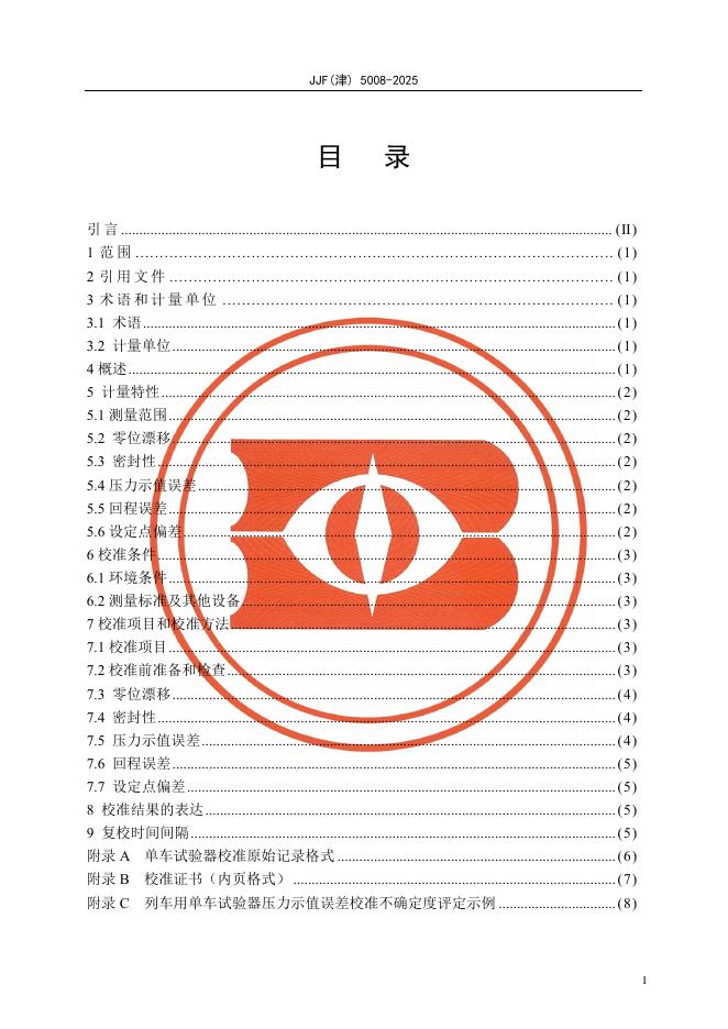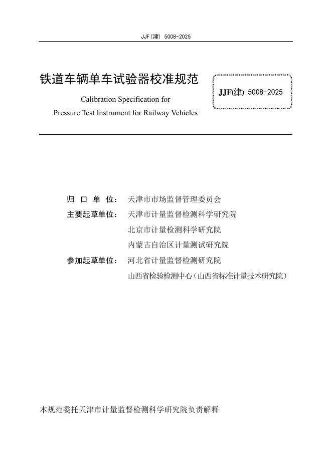 JJF(津)5008-2025 铁道车辆单车试验器校准规范
