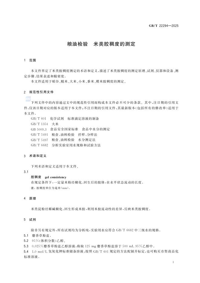 GB/T 22294-2025 粮油检验 米类胶稠度的测定