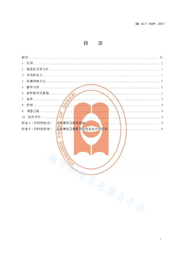 DB14/T 1509-2017 玉米镰孢茎腐病抗性鉴定圃种植及接种技术规程
