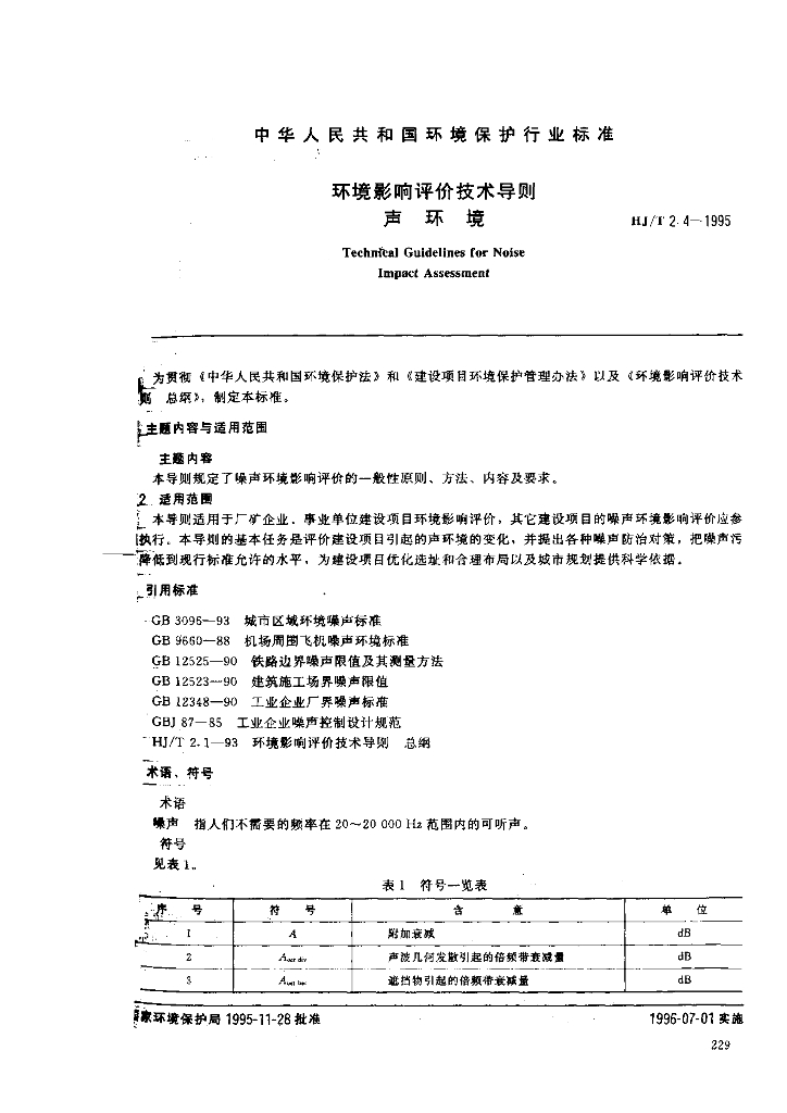 HJ/T 2.4-1995 环境影响评价技术导则 声环境