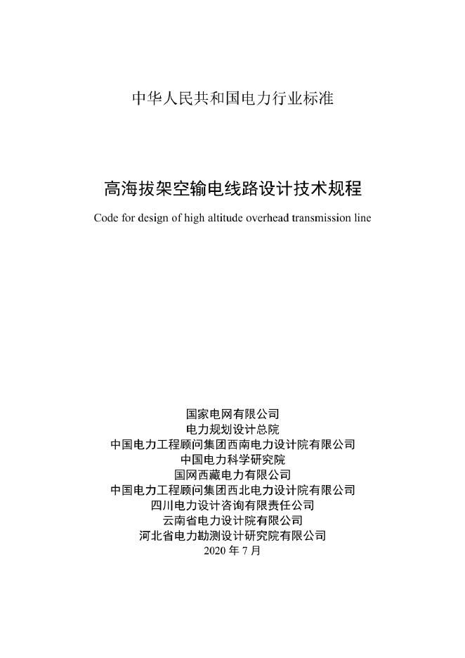 NB/T 11312-2023 高海拔架空输电线路设计技术规程
