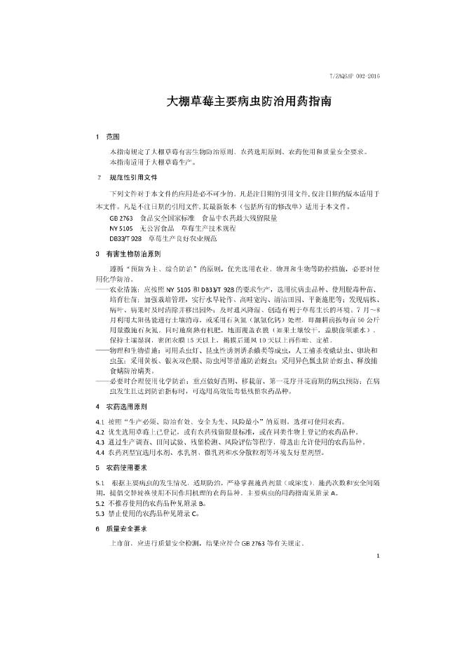 T/ZAQSAP 002-2016 大棚草莓主要病虫防治用药指南