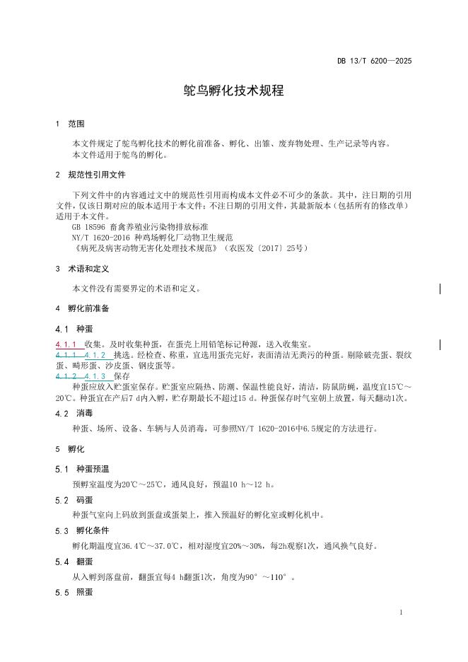 DB13/T 6200-2025 鸵鸟孵化技术规程