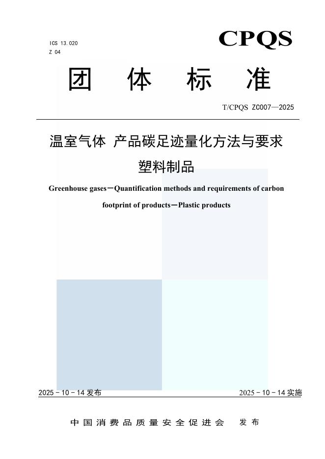 T/CPQS ZC007-2025 温室气体 产品碳足迹量化方法与要求 塑料制品