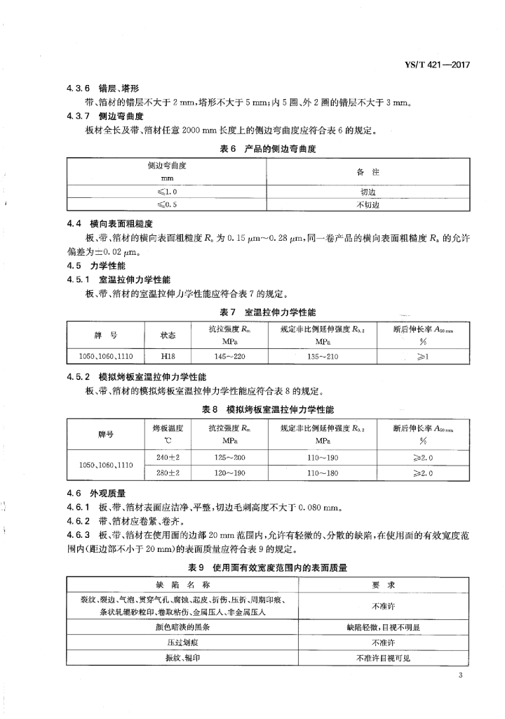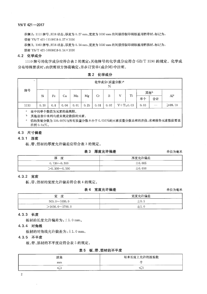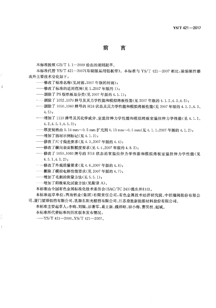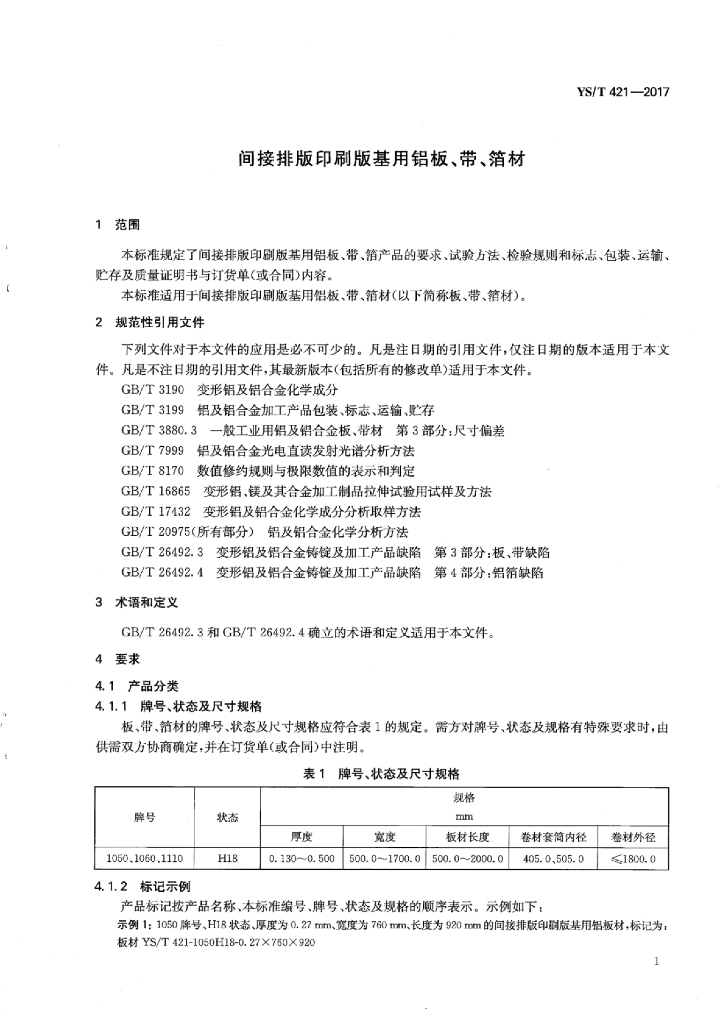 YS/T 421-2017 间接排版印刷版基用铝板、带、箔材