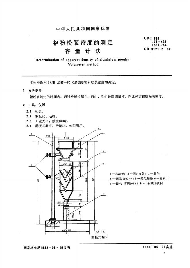 GB/T 3171.2-1982 铝粉松装密度的测定 容量计法
